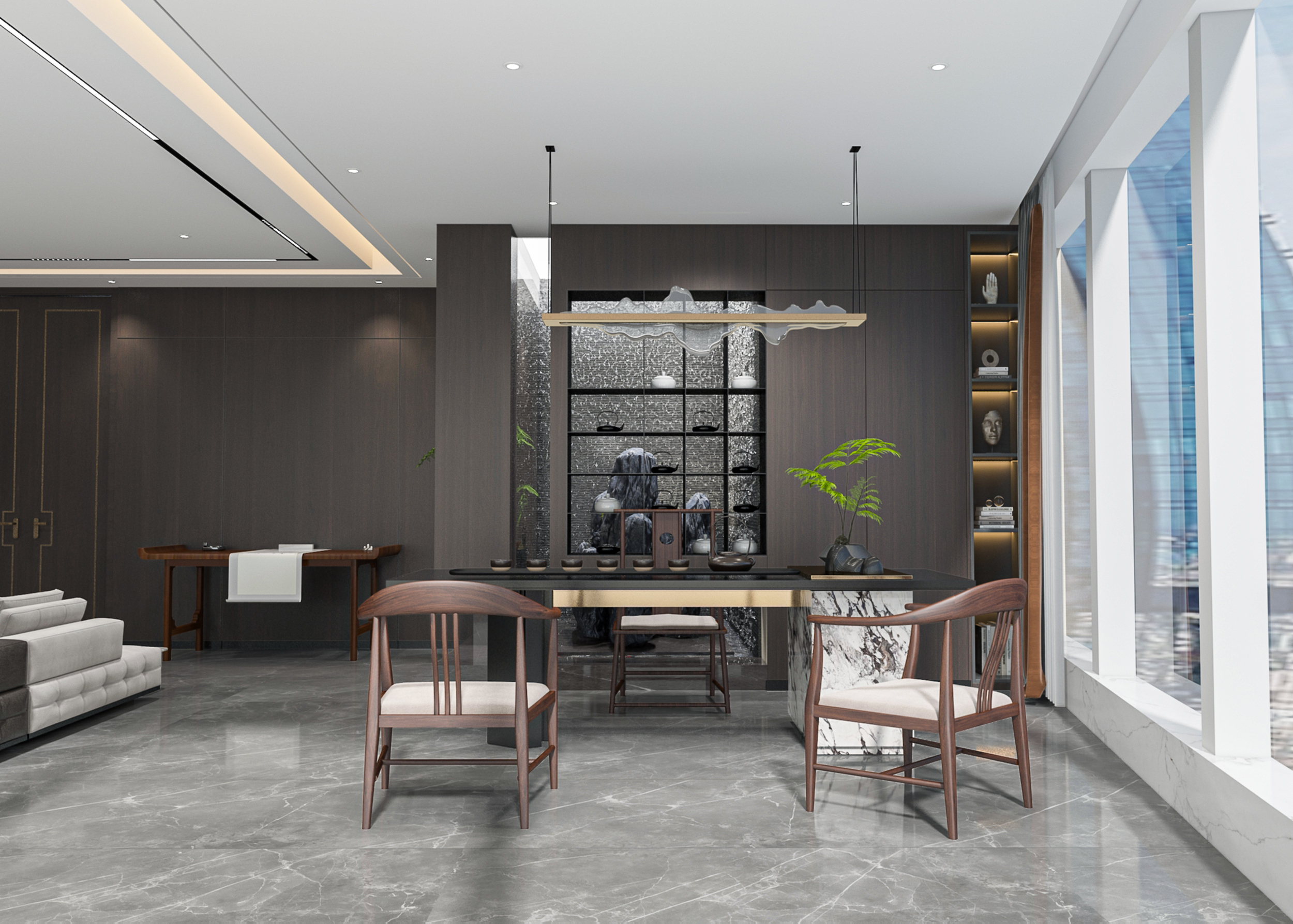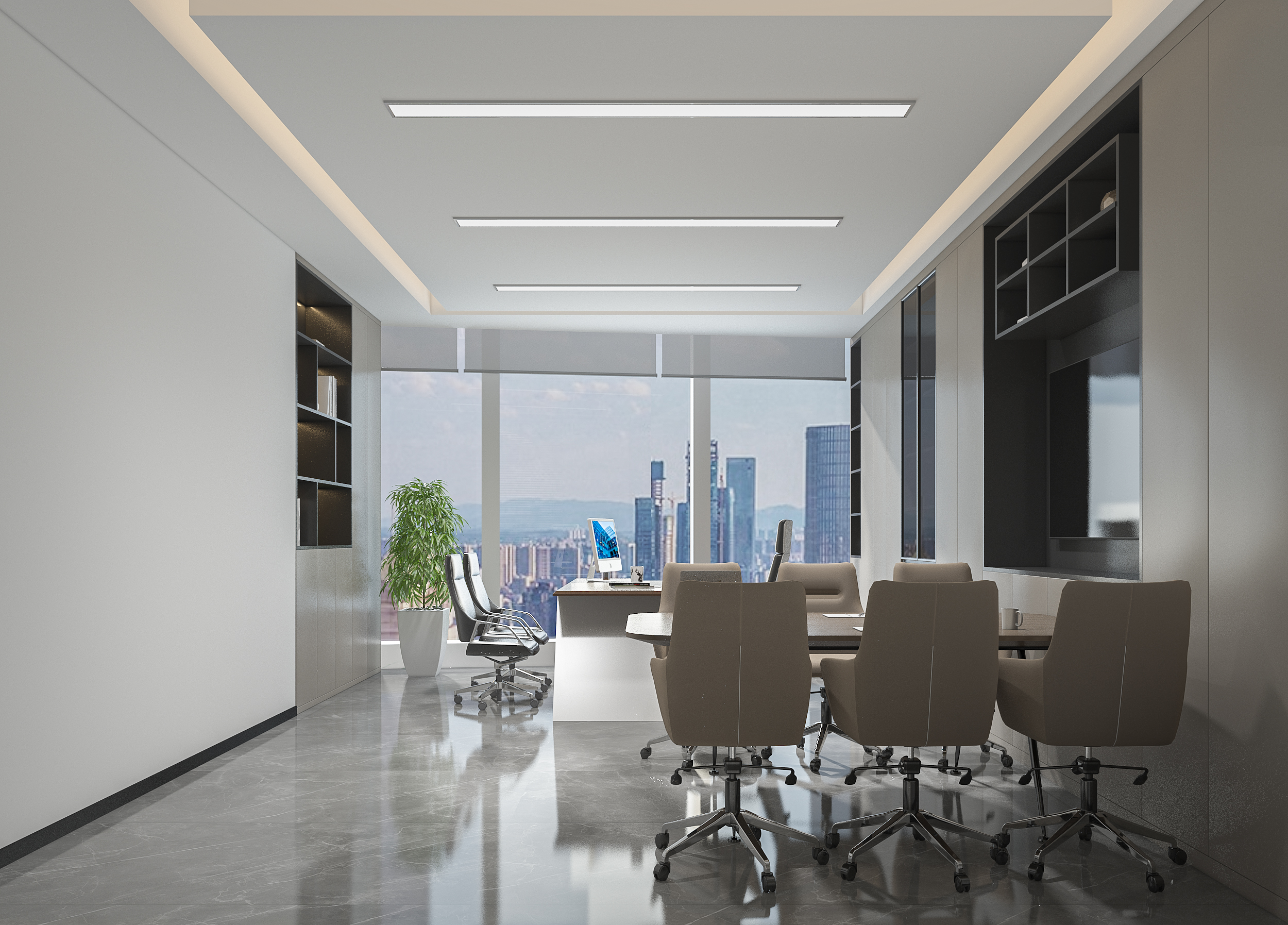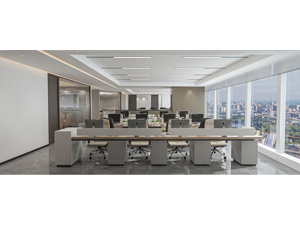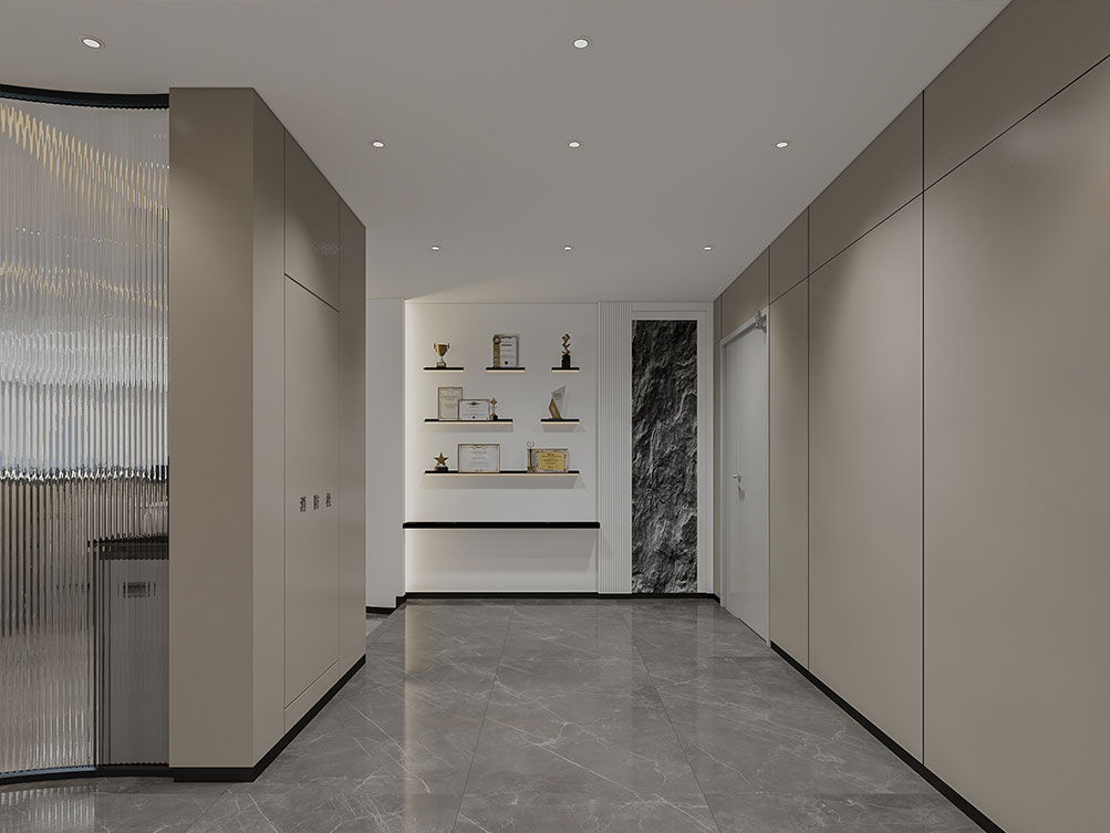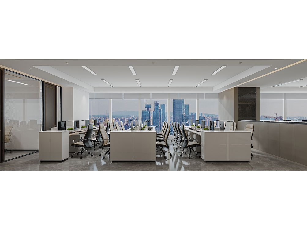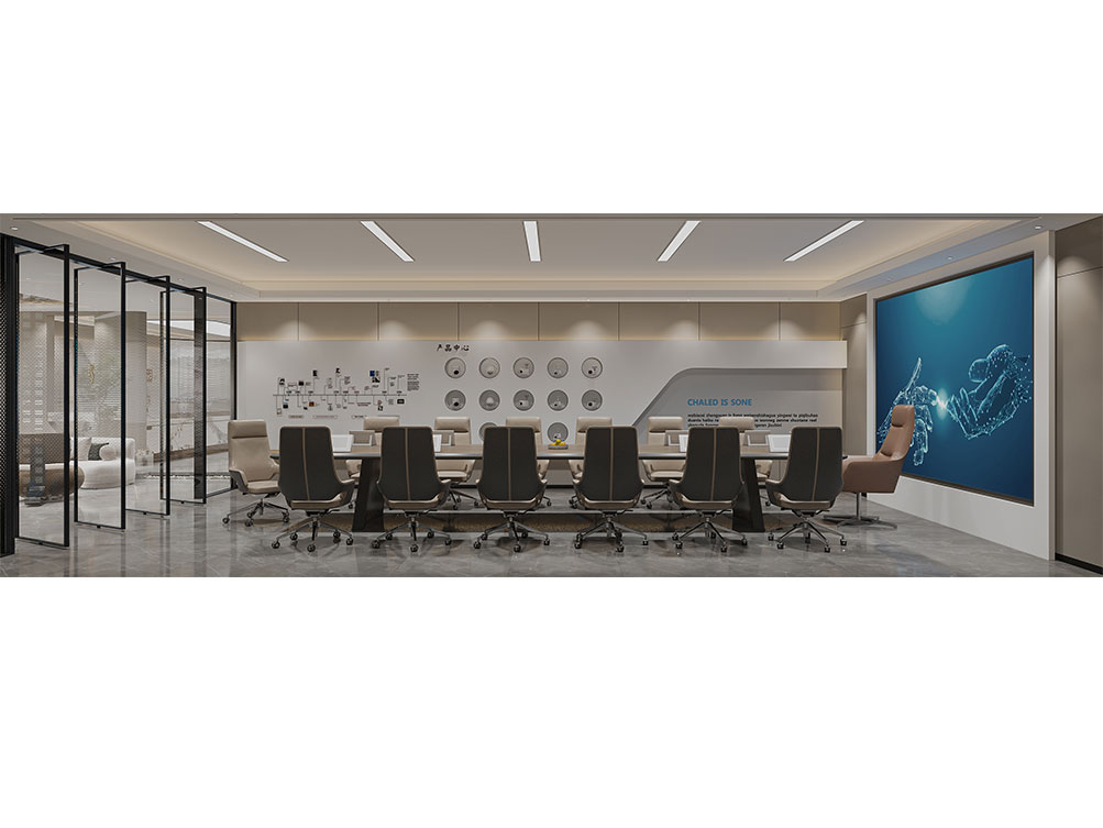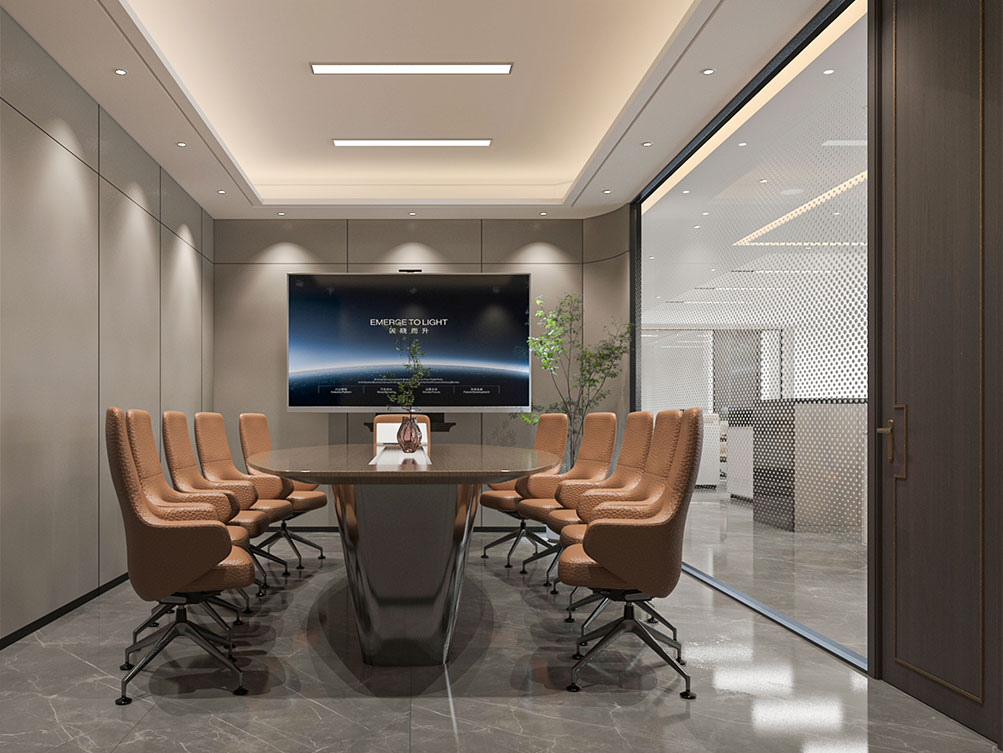 風(fēng)順集團(tuán)裝修效果以 “大氣沉穩(wěn) + 現(xiàn)代高效” 為核心,整體采用深灰、米白為主色調(diào)搭配金屬線(xiàn)條點(diǎn)綴,凸顯企業(yè)質(zhì)感。前臺(tái)接待區(qū)用大理石背景墻嵌入集團(tuán) LOGO,搭配簡(jiǎn)約大氣的接待臺(tái)與藝術(shù)擺件,營(yíng)造專(zhuān)業(yè)第一印象;濟(jì)南辦公室裝修為開(kāi)放辦公區(qū)采用模塊化工位設(shè)計(jì),配備獨(dú)立收納與人體工學(xué)座椅,墻面穿插集團(tuán)發(fā)展歷程掛畫(huà)與綠植,兼顧高效與舒適;會(huì)議室按規(guī)模配置高清會(huì)議系統(tǒng)與吸音材質(zhì),滿(mǎn)足不同商務(wù)需求;同時(shí)預(yù)留休閑茶水區(qū)與榮譽(yù)展示墻,既方便員工放松,也直觀傳遞企業(yè)實(shí)力,整體空間兼具品牌形象與實(shí)用功能。